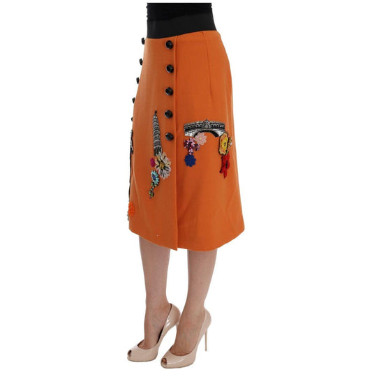 华丽的橙色皮革乐福鞋,配金色刺绣
