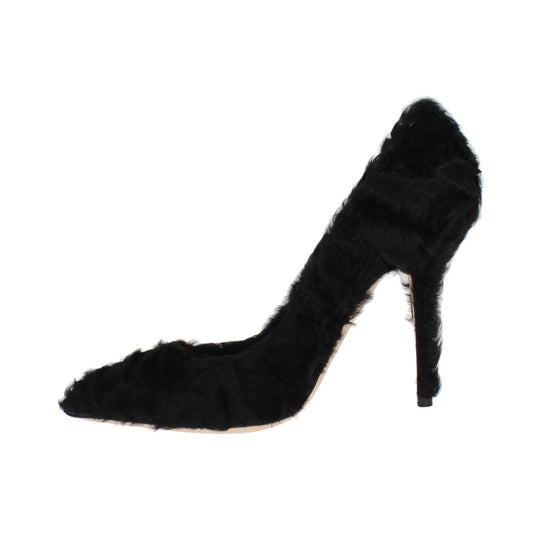 Dolce & Gabbana Black Xiangao Lamb Fur Leather Pumps