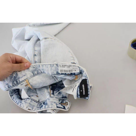 Dsquared² Blue Tattered Mid Waist Cropped Twiggy Denim Jeans