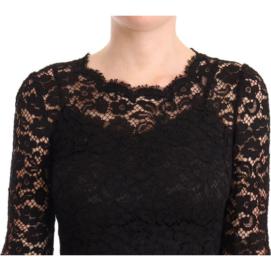 优雅黑色弹力紧身中长连衣裙