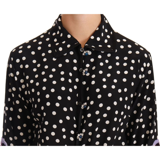 优雅真丝圆点亮片中长连衣裙