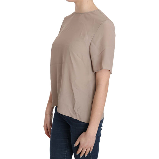 优雅米色真丝上衣搭配蝴蝶结围巾