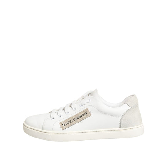 Dolce & Gabbana White Gold Leather Low Top Sneakers Shoes