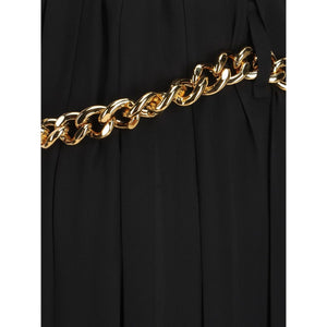 black crepe texture pleated skirt concealed side zip fastening chain-link detailing high-waisted belt loops ankle-length Chain embellished pleated skirt
