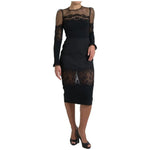 • Dolce & Gabbana Black Sheer Floral Lace Sheath Midi Dress