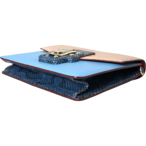 Dolce & Gabbana Blue Beige Exotic Leather LUCIA Crossbody Purse Bag