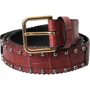 Dolce & Gabbana Brown Alligator Leather Studded Metal Buckle Belt