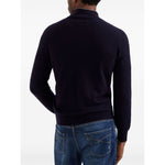 Navy blue cashmere knitted construction funnel neck short front zip fastening long sleeves ribbed cuffs and hem straight hem Cashmere high-neck sweater