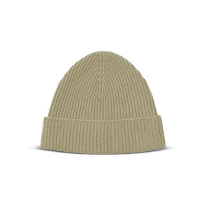 Equestrian Knight cashmere beanie from BURBERRY featuring taupe, cashmere, ribbed knit, oval crown, embroidered logo to the front, signature Equestrian Knight motif and turn-up hem. Wool and cashmere blend beanie