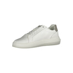 Unleash your stride with a touch of class in these sleek Calvin Klein sneakers. Designed for the modern urbanite, these shoes offer a perfect blend of sustainability and style, with a 50% recycled thermoplastic rubber sole. The white palette is accented by grey details, making a bold statement with every step. The removable footbed ensures comfort without compromising on the fashion-forward aesthetic emblematic of Calvin Klein. Step into a world where eco-consciousness meets luxury.