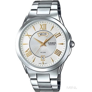 CASIO BESIDE Mod. DAY & DATE - WHITE. GOLD INDEXES