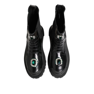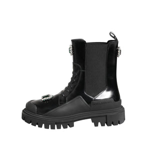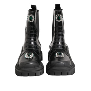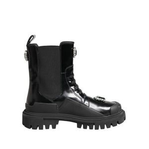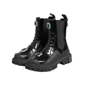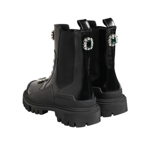 Dolce & Gabbana Black Crystal Embellished Combat Boots Shoes