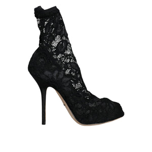 Dolce & Gabbana Black Lace Stretch Heels Mid Calf Boot Shoes
