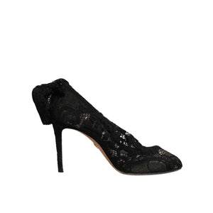 Dolce & Gabbana Black Lace Stretch Heels Mid Calf Boots Shoes