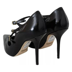 Dolce & Gabbana Black Leather Ankle Strap Heels Pumps Shoes