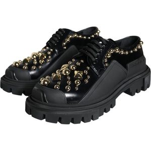 Dolce & Gabbana Black Leather Trekking Derby Embellished Shoes