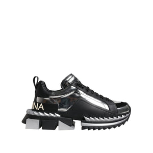 Dolce & Gabbana Black Silver SUPER KING Leather Sneaker Shoes