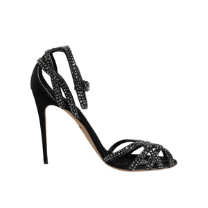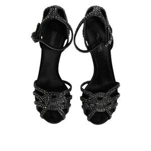 Dolce & Gabbana Black Strass Ankle Strap Heels Sandals Shoes