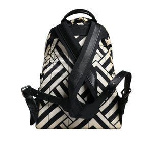 Dolce & Gabbana Black White Nylon Leather Travel Back Pack Bag