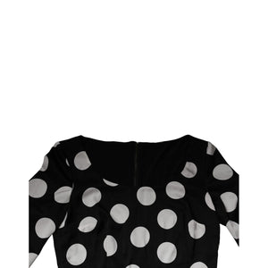 Dolce & Gabbana Black White Silk Polka Dots Sheath Midi Dress