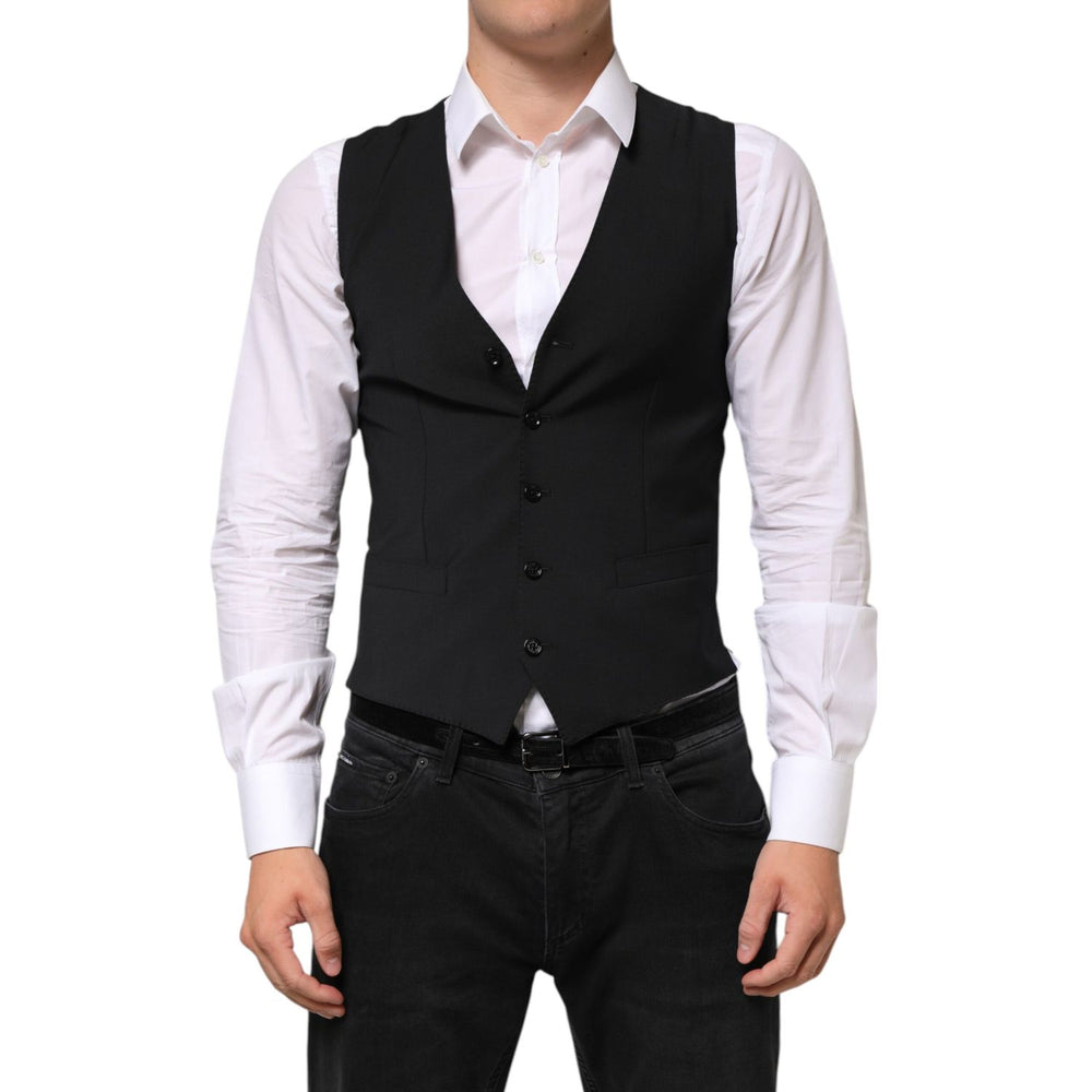 Dolce & Gabbana Black Wool Dress Formal Men Waistcoat Vest