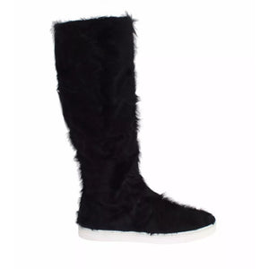 Gorgeous, brand new with tags 100% Authentic Dolce & Gabbana Black Xiangao fur leather flat sneaker boots Shoes. These items come from the exclusive MainLine Dolce & Gabbana collection.