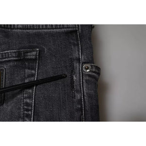 Dolce & Gabbana Dark Gray Tattered Cotton Skinny Denim Jeans