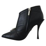 Gorgeous, brand new with tags 100% Authentic Dolce & Gabbana exude Sicilian elegance, taking inspiration from everyday Italian lifestyle, like these black quilted buckled leather booties. Featuring a pointed toe, a side zip fastening, a branded insole and a high stiletto heel.