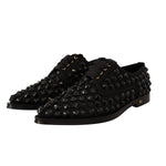 Dolce & Gabbana Black Lace Up Studded Formal Flats Shoes