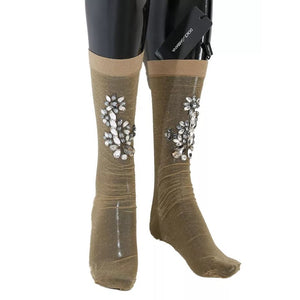 Dolce & Gabbana Gold Stretch Floral Clear Crystal Stocking Socks