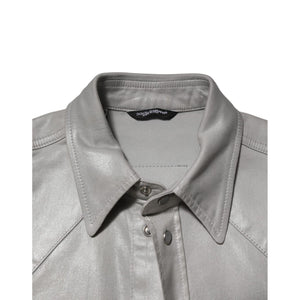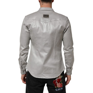 Dolce & Gabbana Gray Coated Cotton Snap Button Logo Men Shirt