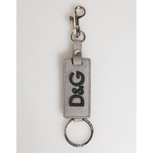 Dolce & Gabbana Gray Leather Logo Metal Ring Keychain Holder Men Keyring