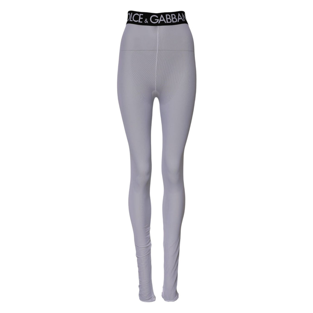 Dolce & Gabbana Gray Nylon DG Logo Mid Waisted Leggings Pants