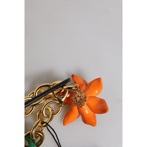 Dolce & Gabbana Multicolor Gold Brass Orange Lily Floral Chain Necklace