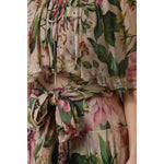 Dolce & Gabbana Pink Floral Print Tiered Long Maxi Dress