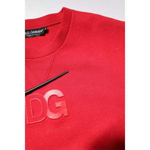 Dolce & Gabbana Red Embossed Logo Cotton Crew Neck Sweater