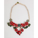 Dolce & Gabbana Red Rose Floral Crystal Embellished Statement Jewelry Necklace