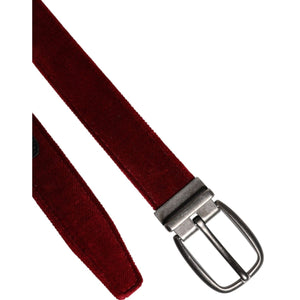 Dolce & Gabbana Red Velvet Black Metal Buckle Logo Belt