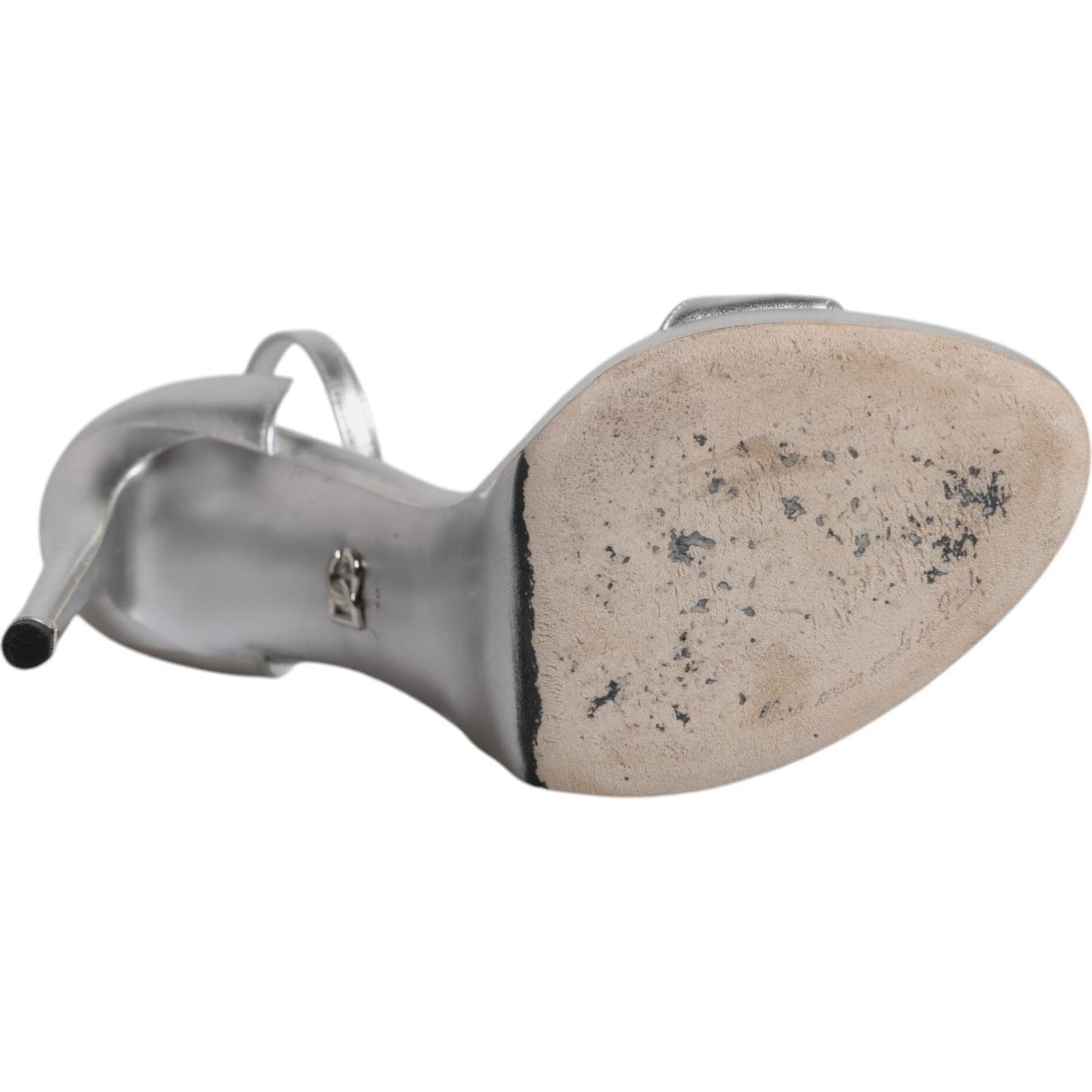 • Dolce & Gabbana Silver Leather Platform Keira Sandals Shoes
