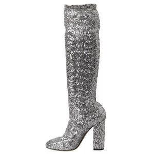 Dolce & Gabbana Silver Sequined High Boots Stretch Shoes