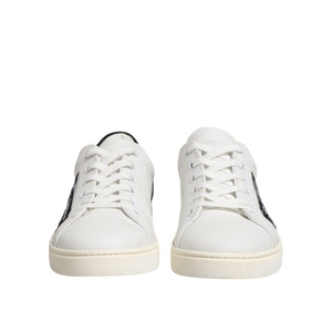 Dolce & Gabbana White Black Leather Low Top Sneakers Shoes