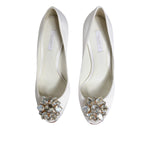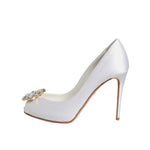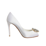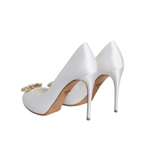 Dolce & Gabbana White Crystals Peep Toe Satin Pumps Shoes