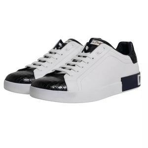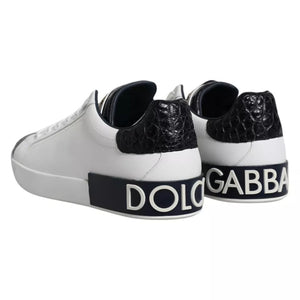 Dolce & Gabbana White Leather Logo Portofino Sneaker Shoes