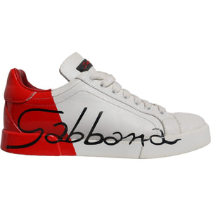 Dolce & Gabbana White Red Logo Portofino Sneakers Shoes
