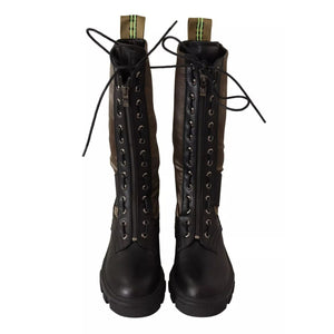 Gaelle Black Green High Combat Boots Lace Up Military Shoes