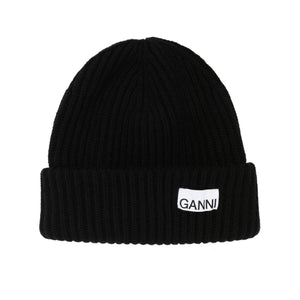 Ganni Oversized Wool Rib Knit Beanie Scarves Hats & Gloves