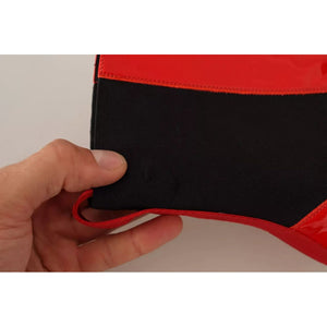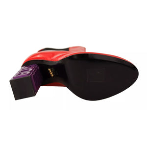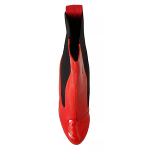 GCDS Red Leather Black Fabric Logo Heel Ankle Boots Shoes