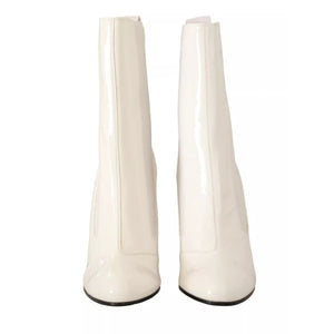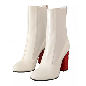 GCDS White Leather Fabric Red Logo Heel Ankle Boots Shoes