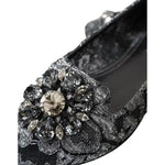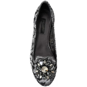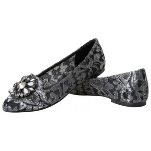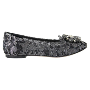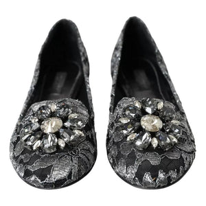 Dolce & Gabbana Gray Black Lace Crystal Ballet Loafers Shoes