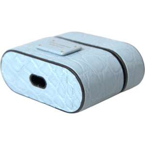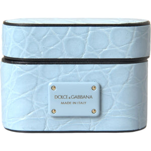 Dolce & Gabbana Light Blue Leather Metal Logo Plaque Airpods Case